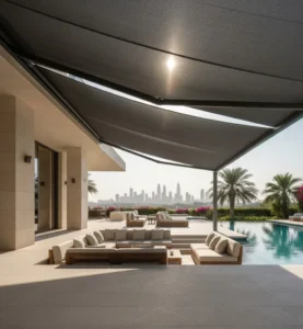 Key Takeaway: Our luxury retractable awnings combine high-performance marine-grade engineering with sophisticated European design, specifically tailored to withstand the intense UV levels of Dubai and Riyadh. By integrating smart automation and heat-reflective fabrics, we provide an architectural solution that extends your outdoor living season while maintaining the aesthetic integrity of your villa. Whether for a private residence or a commercial terrace, these systems offer the ultimate balance of durability, style, and solar protection in the GCC climate.